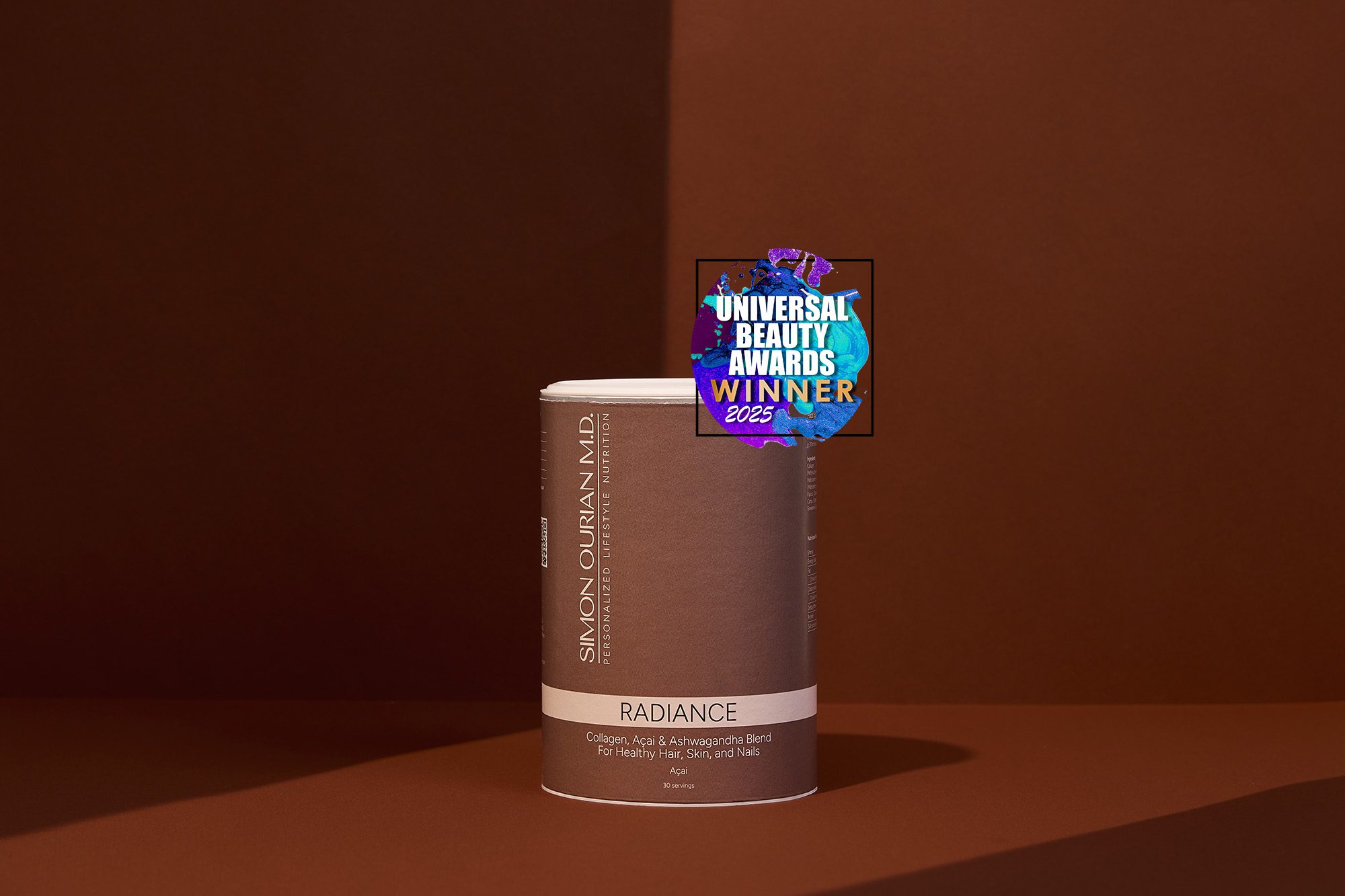 Mezcla de colágeno, açai y ashwagandha para un cabello, piel y uñas saludables.